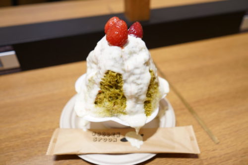 メニューは、苺・マンゴー・白桃のフルーツ系が3種類と、ピスタチオ・黒蜜きなこのちょっと大人な味のかき氷の全5種類。その中から今回は、ピスタチオとクリームチーズ(1,000円)のかき氷を注文。