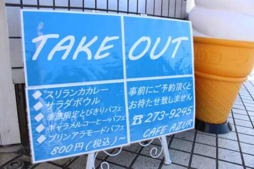 店頭にもTAKEOUTの表示が。えっカレー? パフェ? 何ですか、この食欲をそそられるメニューの数々は?