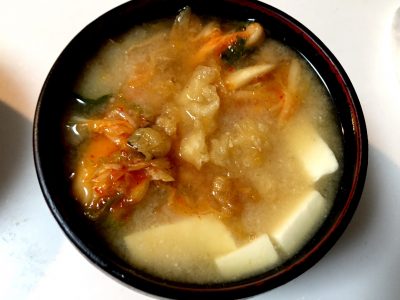 今日はキムチ味噌汁でした。お味噌汁の味が濃くなります。