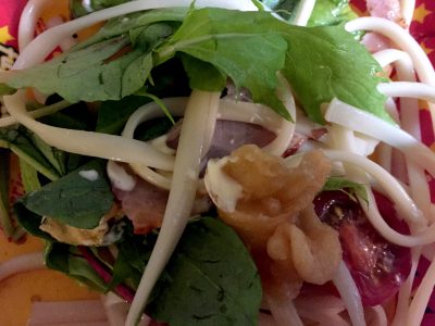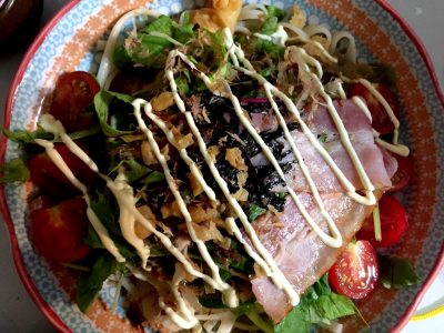 サラダうどんに天かす