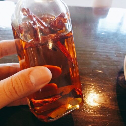 辛さが欲しい時は、オイルをお好みで(辛党なライターは3回しくらいかけました)。