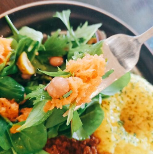 辛ッ!となったらサラダで口を冷やしてさっぱりさせてまたカレーへ。