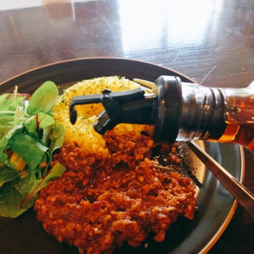 カレーをはじめ、ドレッシングやピカンテオイル(辛味オイル)も手作り。