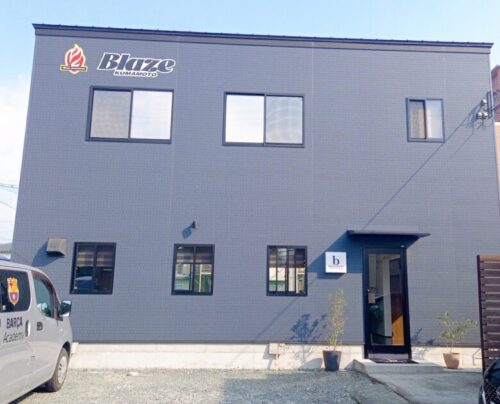 マイクロバスなども止まっていますが、実はここ、サッカーチーム「ブレイズ熊本」の事務所。