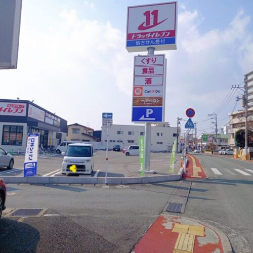 歩きや自転車なら、コスモス月出店の角を曲がって右手側。