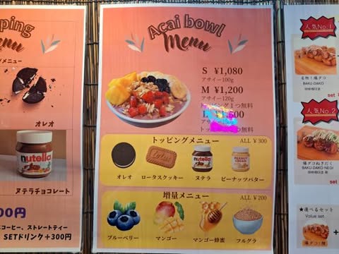 メニューには爆ダコ以外にアサイーボウルもあります。