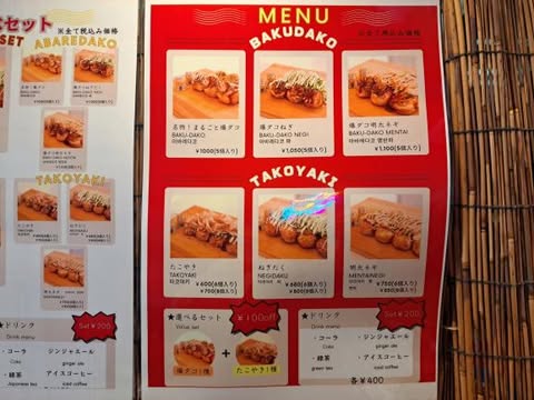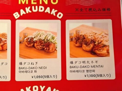 Backの爆ダコは歯ごたえ抜群のタコ焼き。