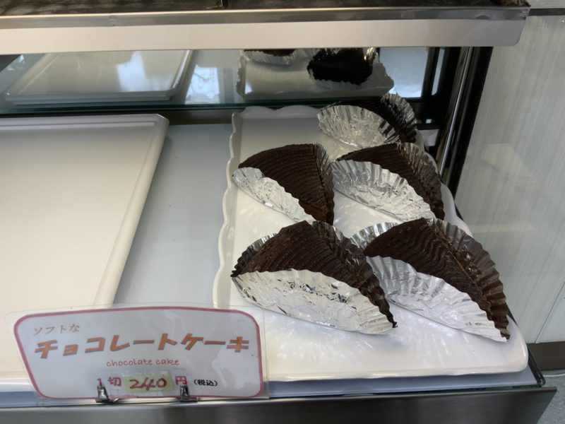 お菓子職人でもあるので、ケースにはケーキも並んでいました、チョコレートケーキが240円だったり、