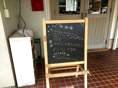 手書きの黒板ボードがお出迎え!