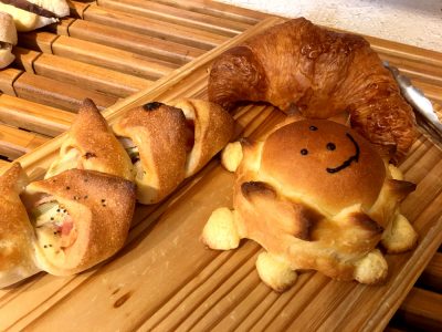 このニコニコパンの他、クロワッサンの出来映えも最高で、思わず手に取ってしまうパンばかりでした!