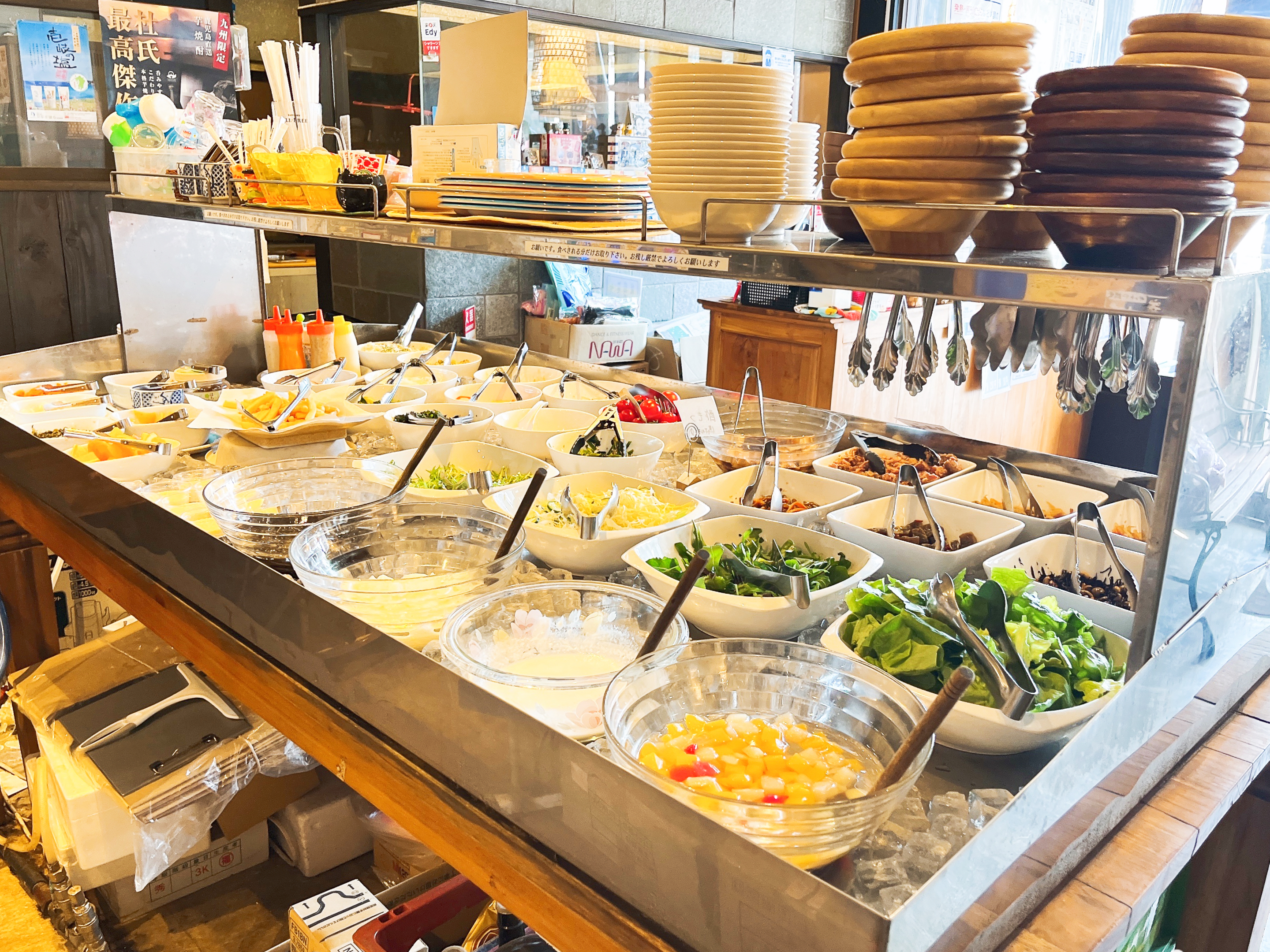 まずはサラダバー。まるでホテルのビュッフェくらいのラインナップです。