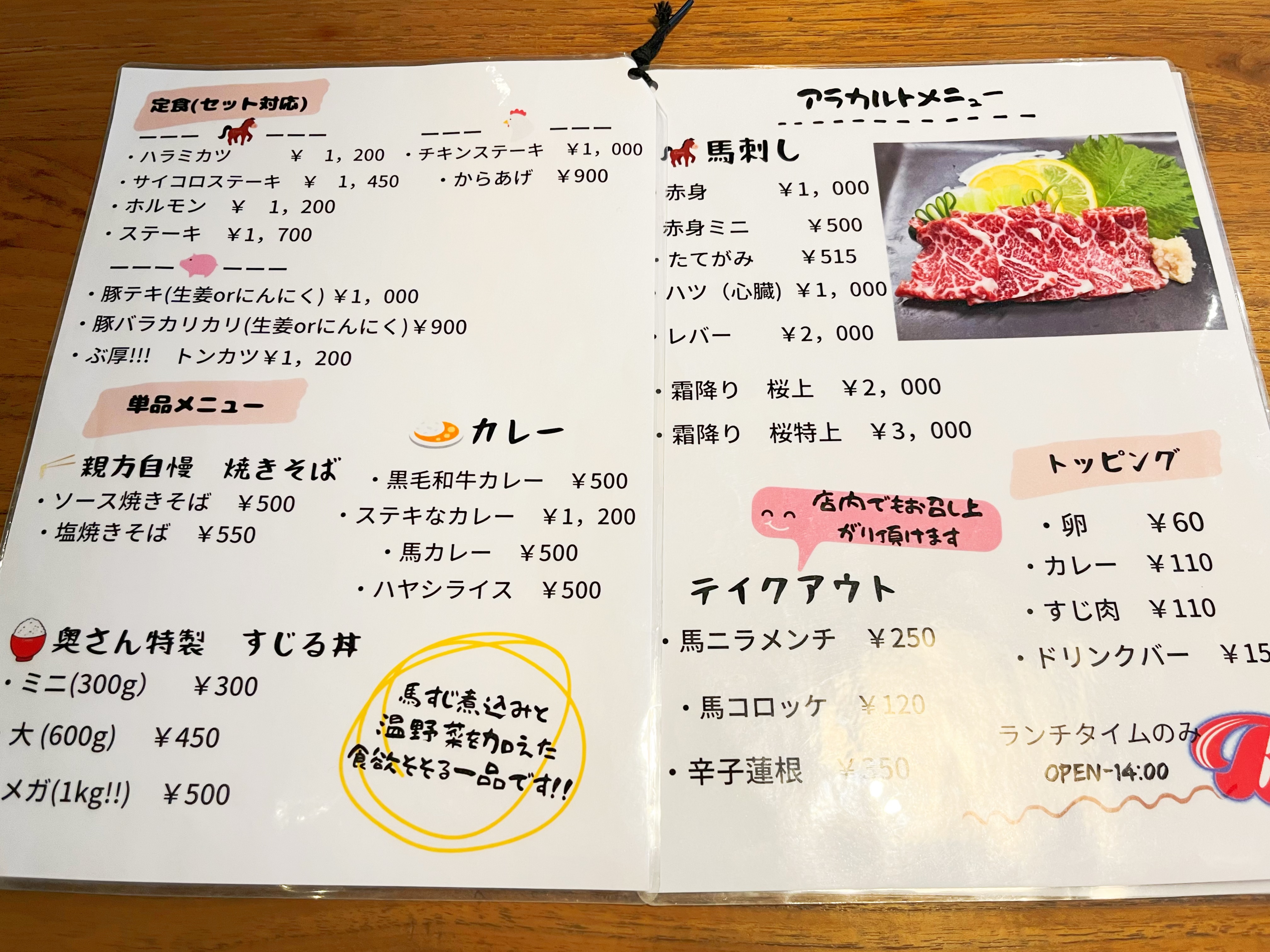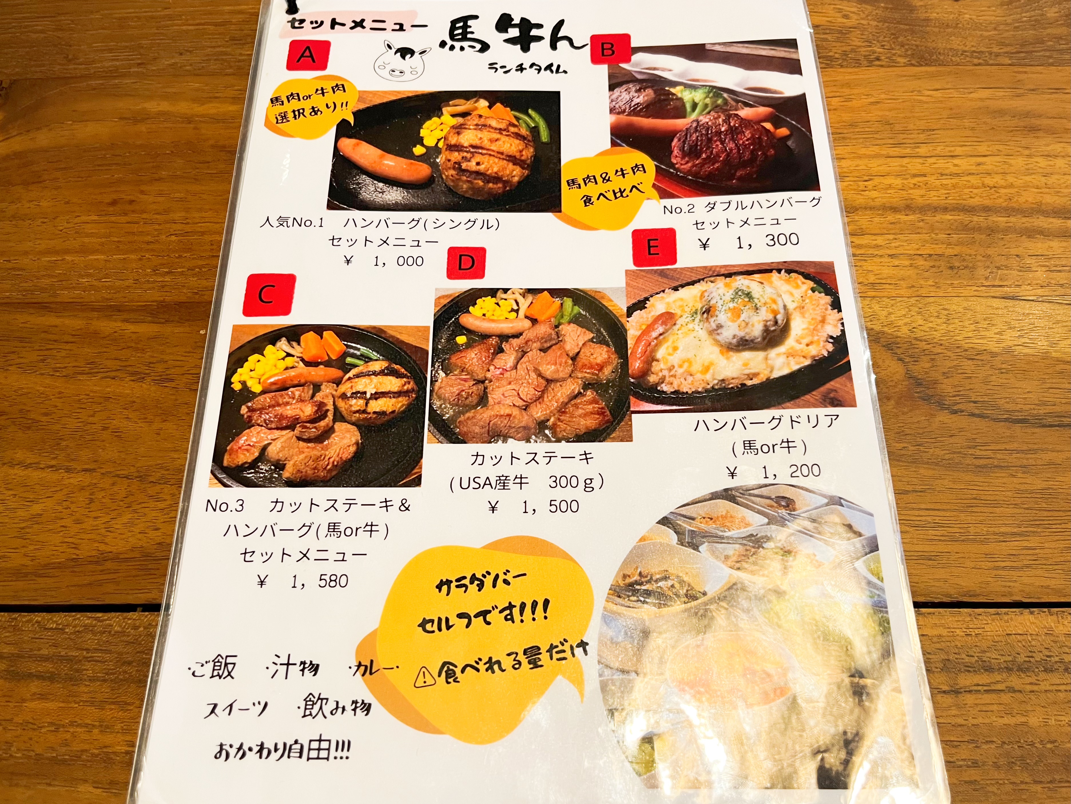 しかも、ハンバーグにいたっては馬肉と牛肉から選べるそうです。これは嬉しいですね。