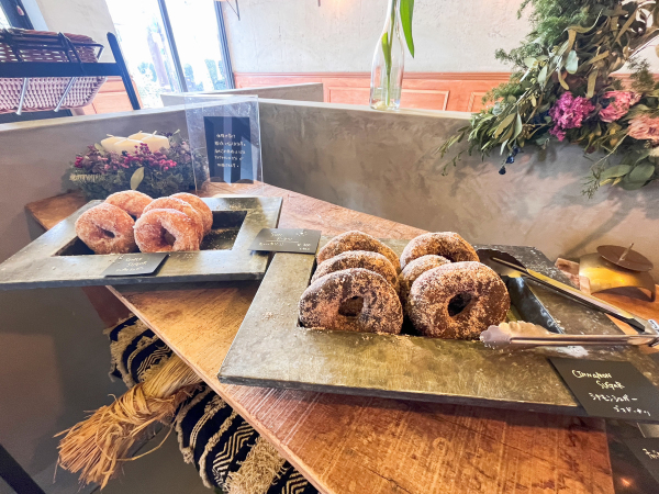 手作りのパンを使ったサンドイッチやドーナツ、ケーキに焼き菓子など種類豊富で、朝食、昼食におやつなど、どんな時に行っても食べたいものがある、そんな魅力的なお店です。