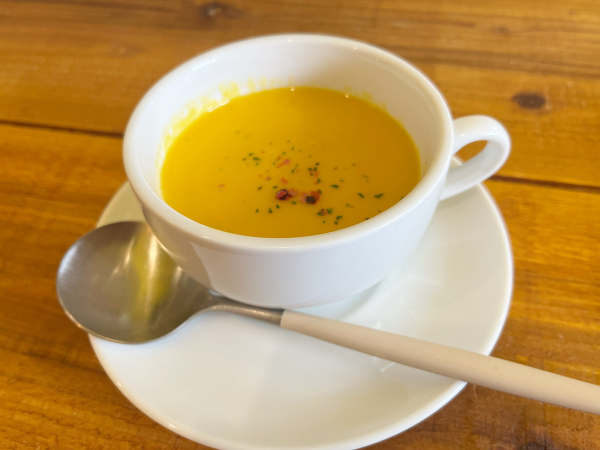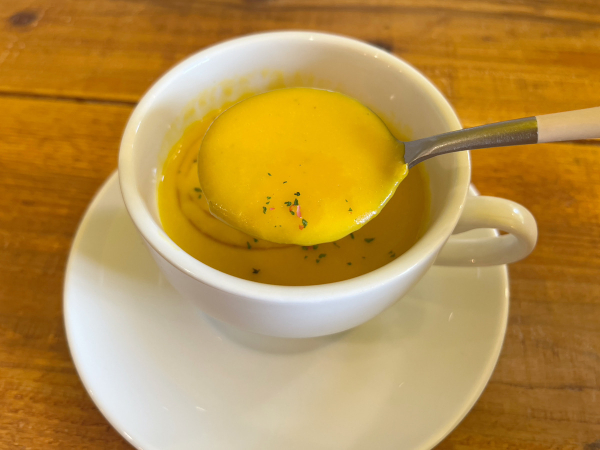 この日のスープは2種類。その中でかぼちゃのスープを選びました。