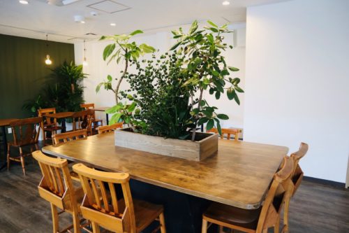 かなり広々としています。おしゃれはな椅子や食器は熊本市のおしゃれな家具やさんジョンブルにて揃えられたそうです。重厚感が素敵です。