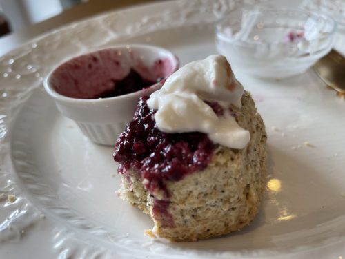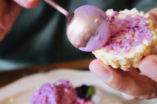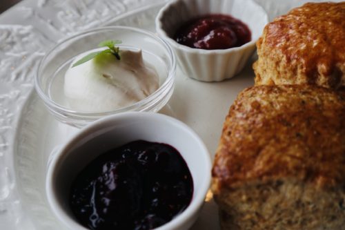 食べ始めると綺麗な写真が撮れないのが残念ですが、三種類のクリームやこだわりのジャムをたくさんつけてゆっくりお話ししながら頂けました。スコーンの小麦粉も、どれが一番美味しいか、研究を重ねて、厳選されたものを使用されております。どの小麦粉が選ばれたのかは企業秘密です。