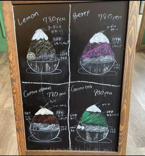 かき氷なのできっと期間限定。熊本は暑いのでしばらくはやってると思いますが…という事。(お値段は令和4年8月現在のもの)
