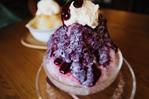 ヨーグルトクリームと自家製ベリーシロップがこれでもかとかかったかき氷。