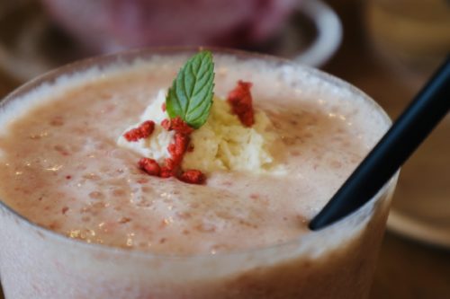 苺のスムージーも、たっぷり苺の実を使ってあり、