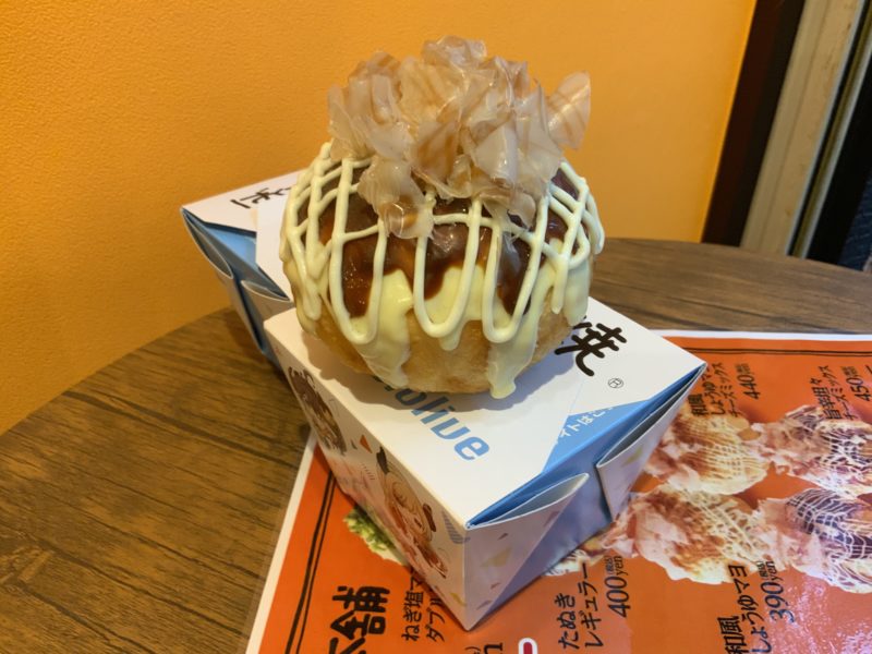 中には10種類の具材が入っていて、トッピングも15種類あります。1つのサイズは平均的なたこ焼き8個分だそうです。そう考えたらプレーンの1個390円って結構お手頃。