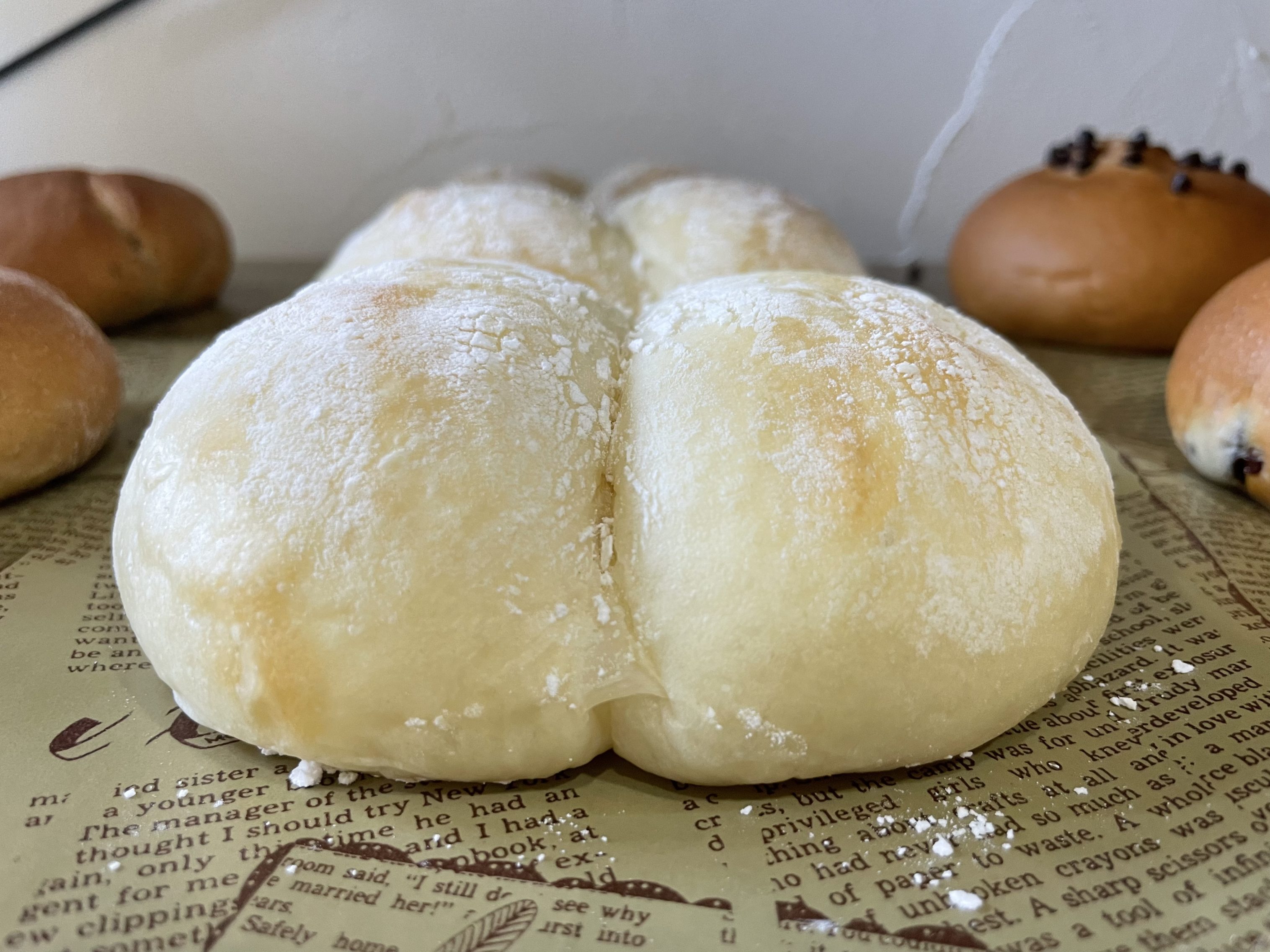 見るからに、フワフワそうな白パン。赤ちゃんのお尻のようです、シッカロール振った後の。