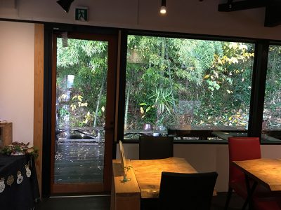 お店の大きな窓の先には、素晴らしい竹林を鑑賞できます。