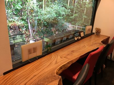 こういう大きな窓でカウンターでお茶やお食事が楽しめるのもいいですね。