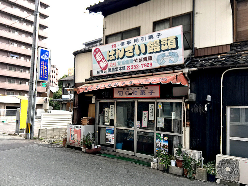 古い街並みが魅力の新町界隈で、創業から70年以上続く老舗和菓子店「ばんざい饅頭本舗」。