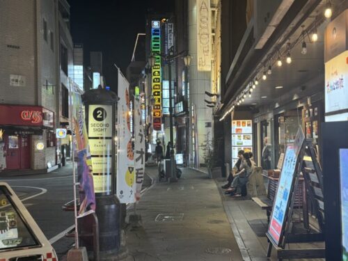 賑やかでざわざわとした栄通りから、ビルの間にすっと入ると一気にシーンとします、が不安がらずに少し前に進みます。
