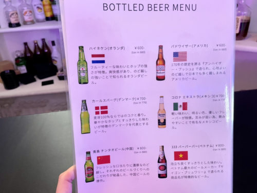生ビールのほか、瓶ビールもあります。今回は「カールスバーグ」(770円)をオーダーしました。