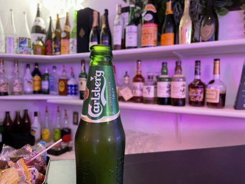 瓶ビールはカールスバーグの他にハイネケン、バドワイザー、コロナ、青島、333と絶妙な品揃え。1杯目はビールをごくごく飲んで、喉の渇きを癒しましょう。