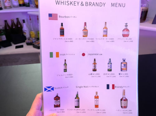 オーダーは1杯ずつでもいいし、2時間制のフリードリンク(男性3,300円・女性2,200円)にもできます。今回は単品でお願いしました。