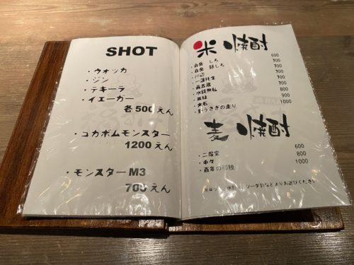 焼酎メニューも豊富です。飲み比べなどもできそうですね。