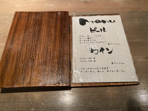 ビールは各種700円(税抜)です。ワインは赤白揃っており、ワインカクテルもご遠慮なくお頼みくださいとのことです。