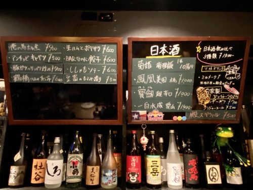 お店の名前の「酒BAR 福すけ」は、最初の「酒」は「サケ」ではなく、「サカ」と読むとのこと。「酒BAR」と書いて「酒場」と読ませるためです。「酒場 福すけ」と読める様にもなっています。面白いですね!