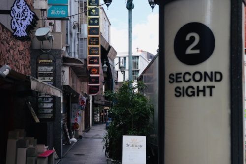 セカンドサイトの方に歩いてすぐの左側。この立て看板が目印です。