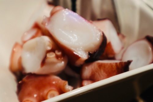 タコよ。タコのでかさ。熊本県産の地タコ。冷凍もせず生のタコを美味しく下処理してあるそう。きらきらとしてそのままでも食べられそうです。