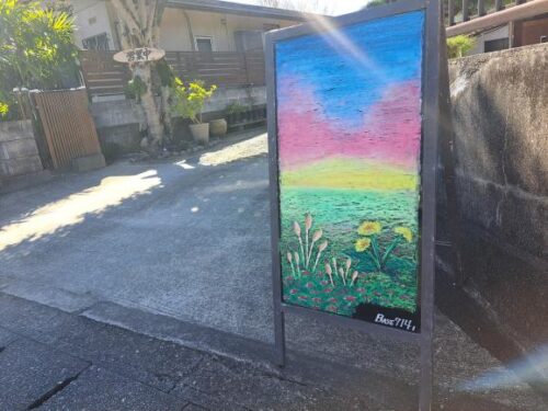 実は店先の綺麗な絵はいつもあるわけではなく、節目の時などに描いて店先に出している幻の看板。