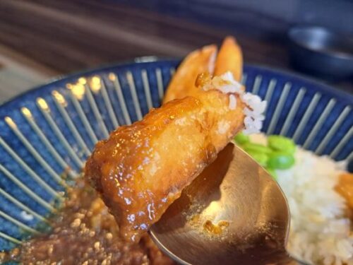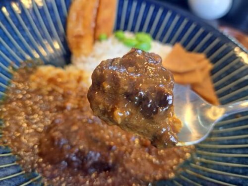 大きな牛肉だけをほおばるのも美味しいですが、牛肉はスプーンでも切れましたのでカレー・御飯・牛肉のトリプルで食べるのもおススメです。