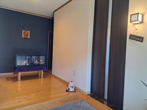 玄関を入るとすぐ右手の茶色い扉の部屋がお店になりますので、靴を脱いで入りましょう。