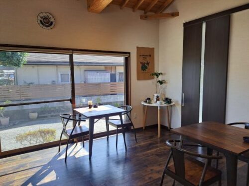 店内は落ち着く色合いの床や家具で統一され、大きな窓から明るく日差しが入ります。