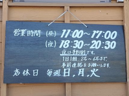 | 営業時間 | 11時~17時 (18時30分~20時30分は1日1組2名以上~事前予約制) |