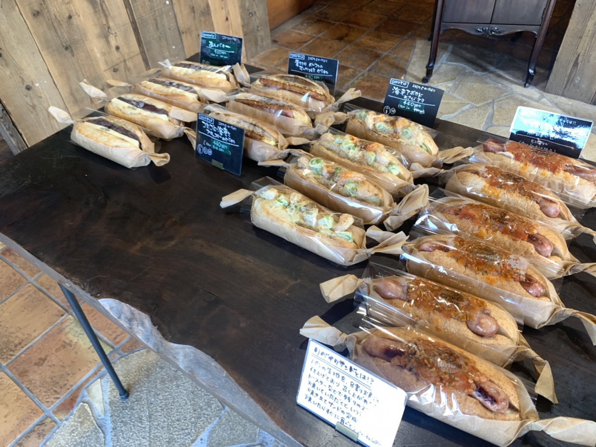 入店してすぐ近くのテーブルには、焼きたてのパンや焼き菓子が並べられており、香ばしいパンの匂いが食欲をそそります。