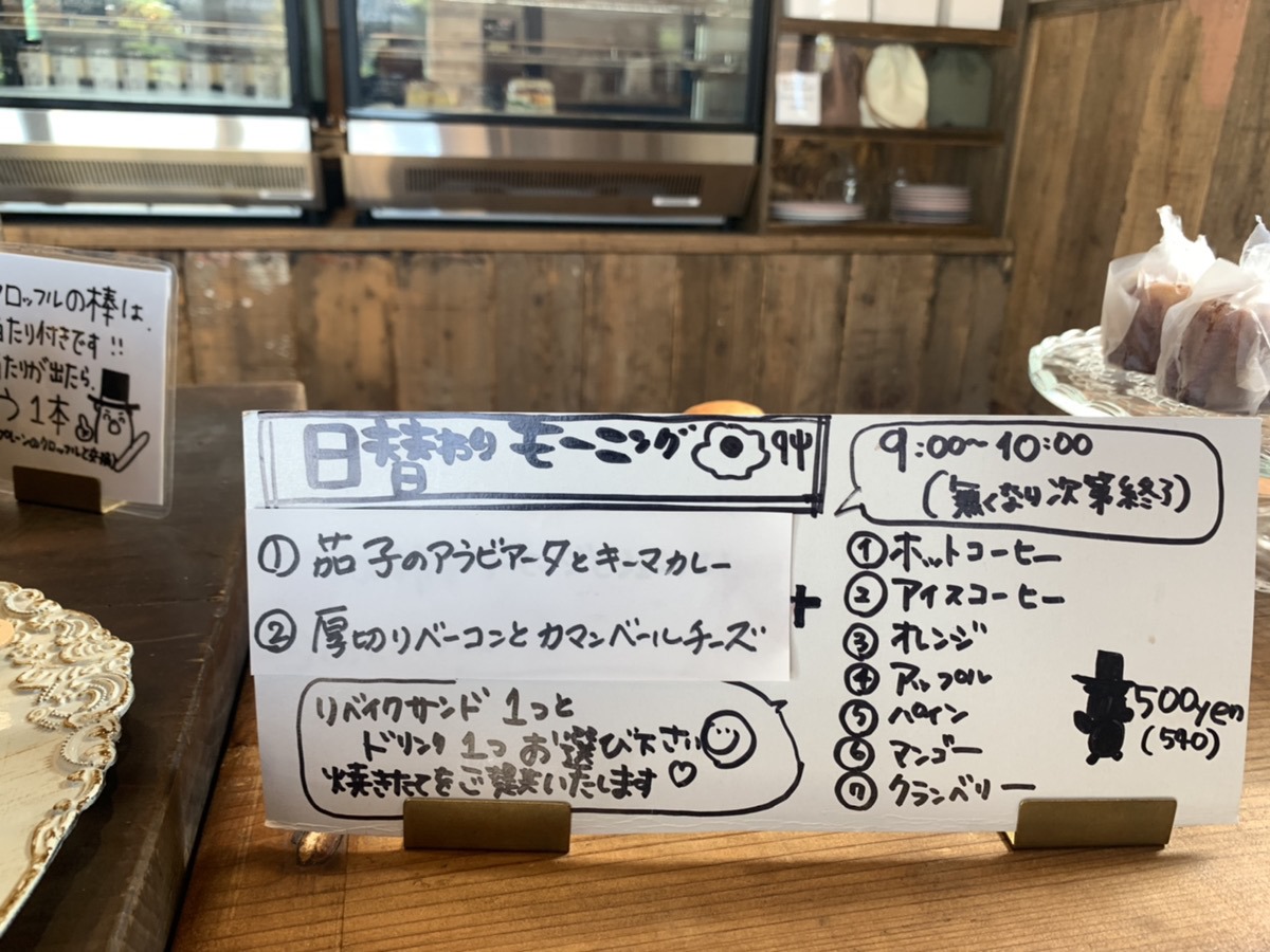 モーニングセットは、通常380円~のリベイクサンドをドリンク付きのワンコインで食べられるお得なセットです。