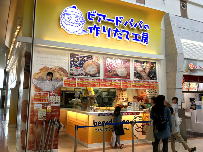 イオンモール熊本での買い物の帰り際につい寄りたくなる立地にある「ビアードパパ」! ちょうど目線が入りやすい場所なんですよね。