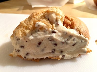 シューを切ってみると、チョコチップが多数散りばめられたバニラクリームがもうみっちり!