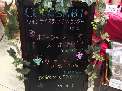 今年のボージョレの味が気になる!という方は、COCOSAB1ワインテイスティングカウンターにて、1杯200円にて試飲ができます。ワイン初心者でも楽しめる、お手頃な価格がうれしいですね!