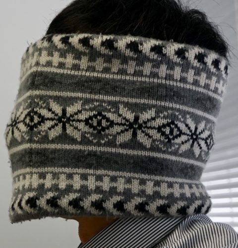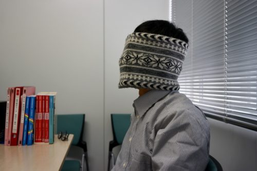 顔を隠して別人に変装してるつもりなんでしょうか…。(そこには触れないでおきましょう)