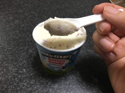 わたあめ味=砂糖味のような印象をいだいていましたが、たしかにわたあめ!砂糖味ではなく、わたあめ味。食感もわたあめに近く、アイスであの味が再現できるとは、衝撃でした。キャンディの粒々感も楽しいフレーバーです。