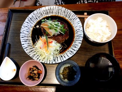 友人は和風ハンバーグ膳です。ボリューミーな和風ハンバーグ!一目見て味が染みてるのが解ります!!